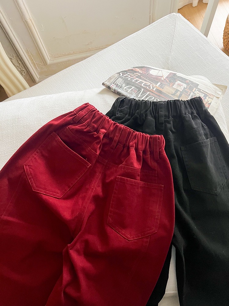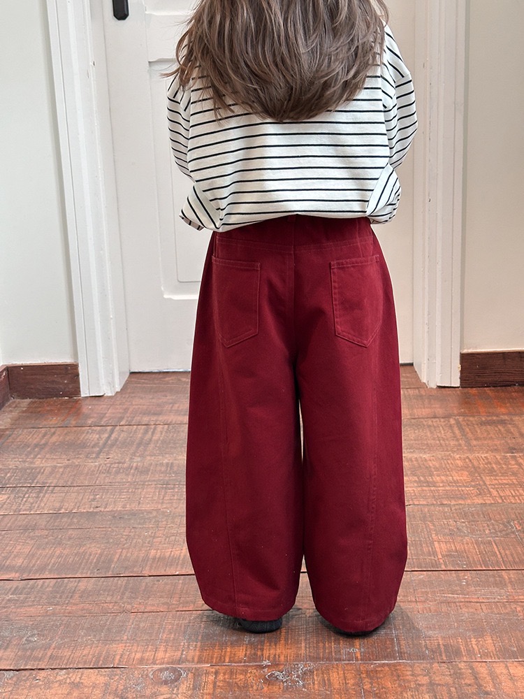 A1-012 韓版紅色休閒時尚豎條紋寬鬆短褲