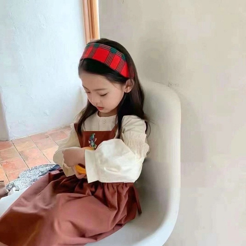 C1-021 圓領格紋上衣加燈芯絨背心裙兩件套裝