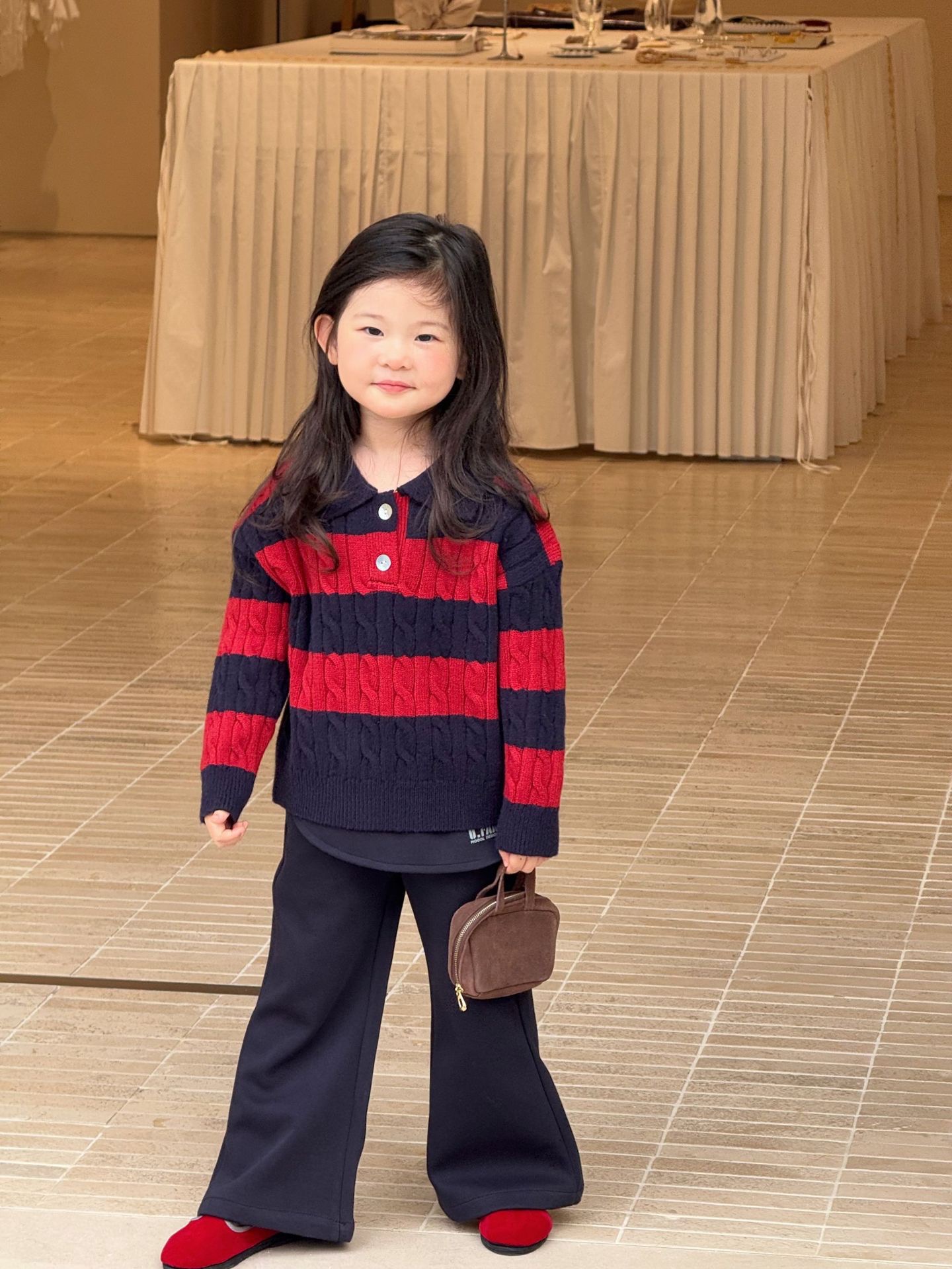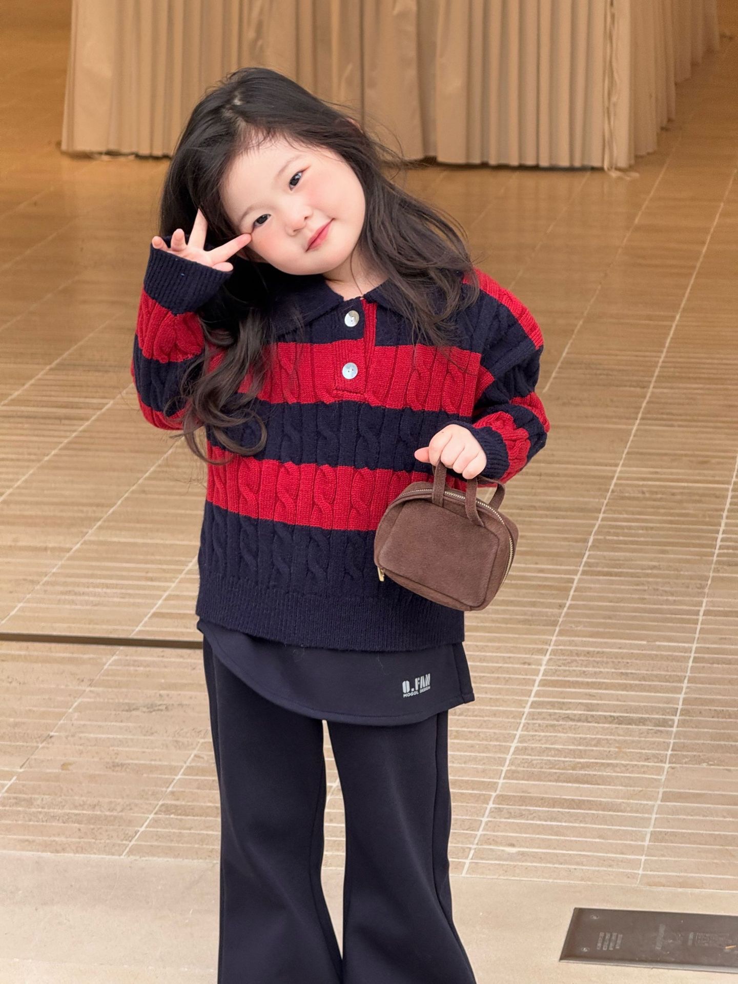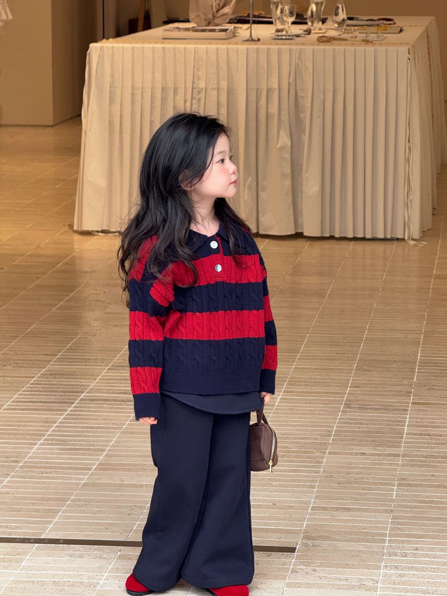 D1-021 紅條紋Polo領毛衣套裝