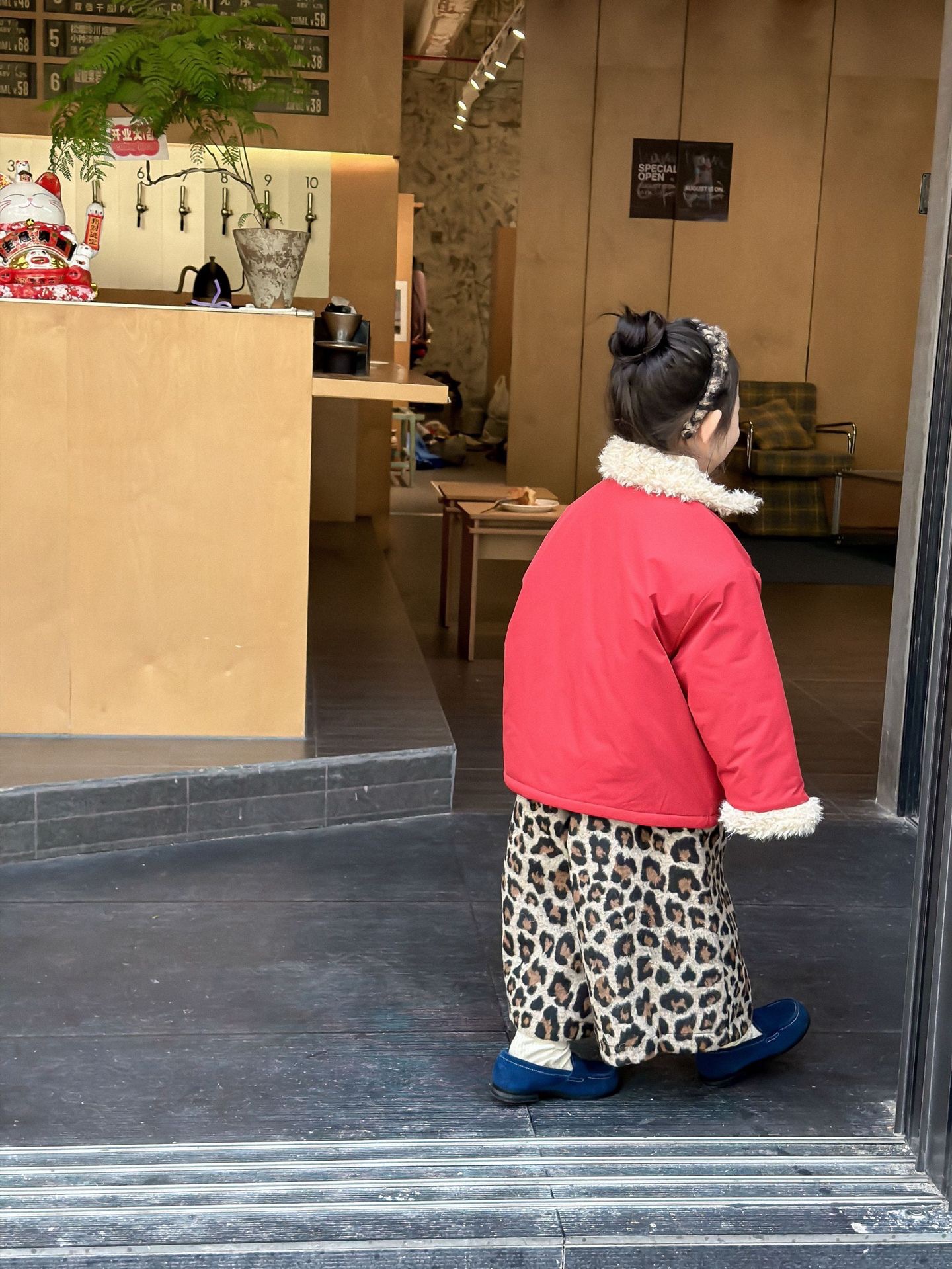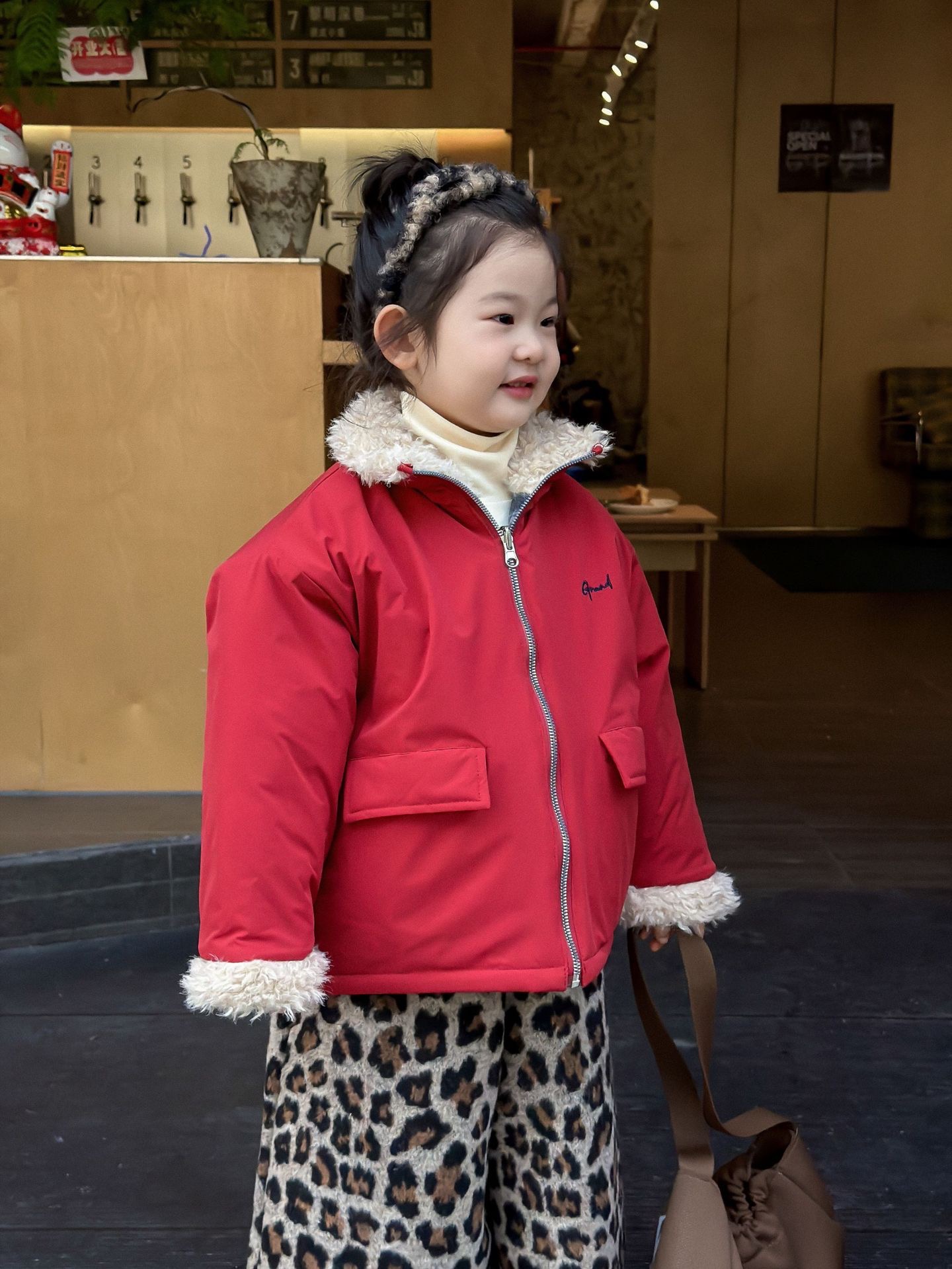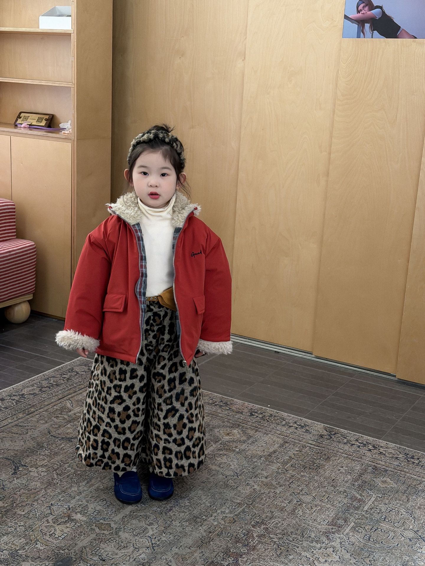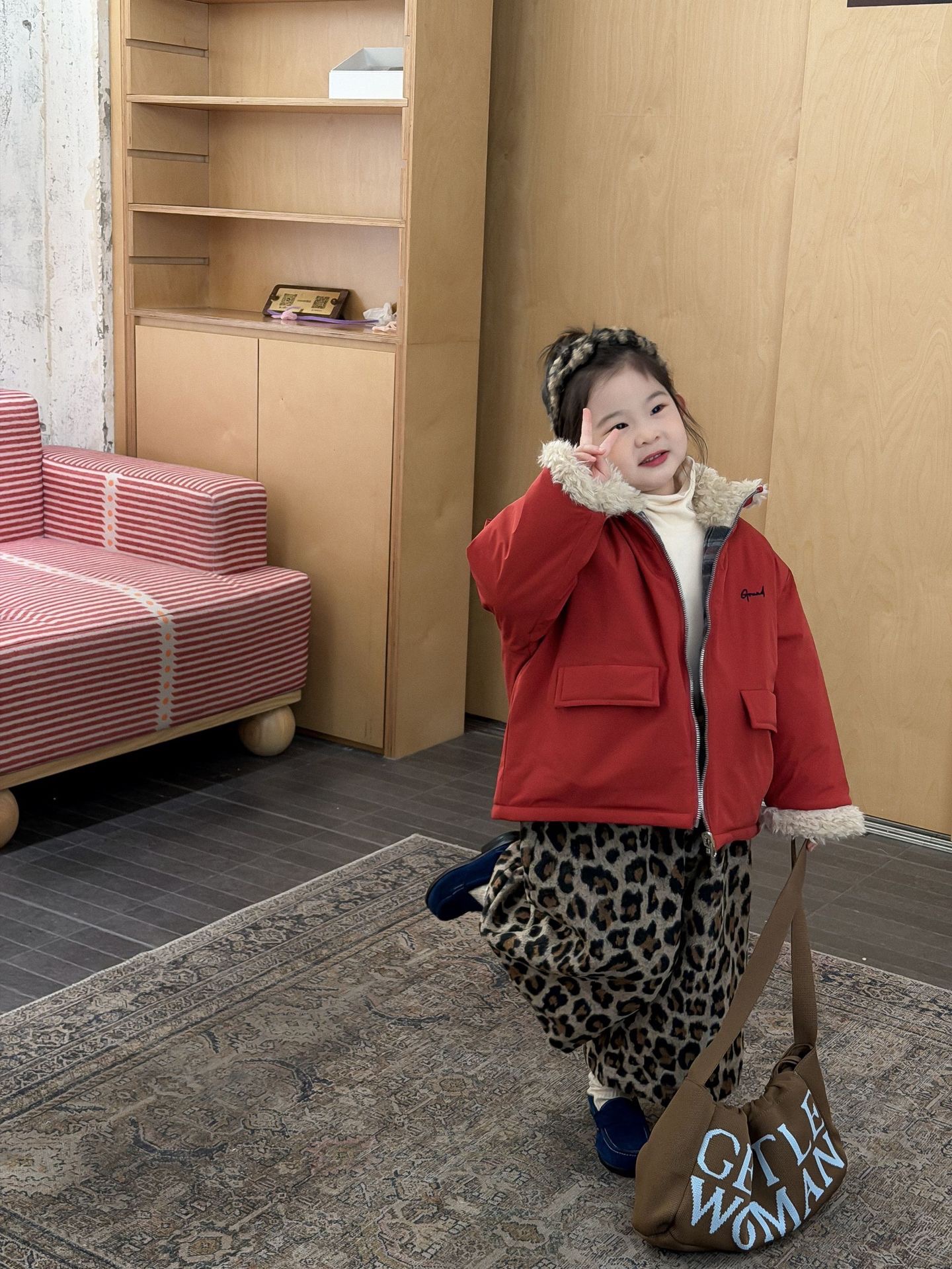 D1-024 夾棉毛領棉服兩面穿外套+加絨豹紋褲