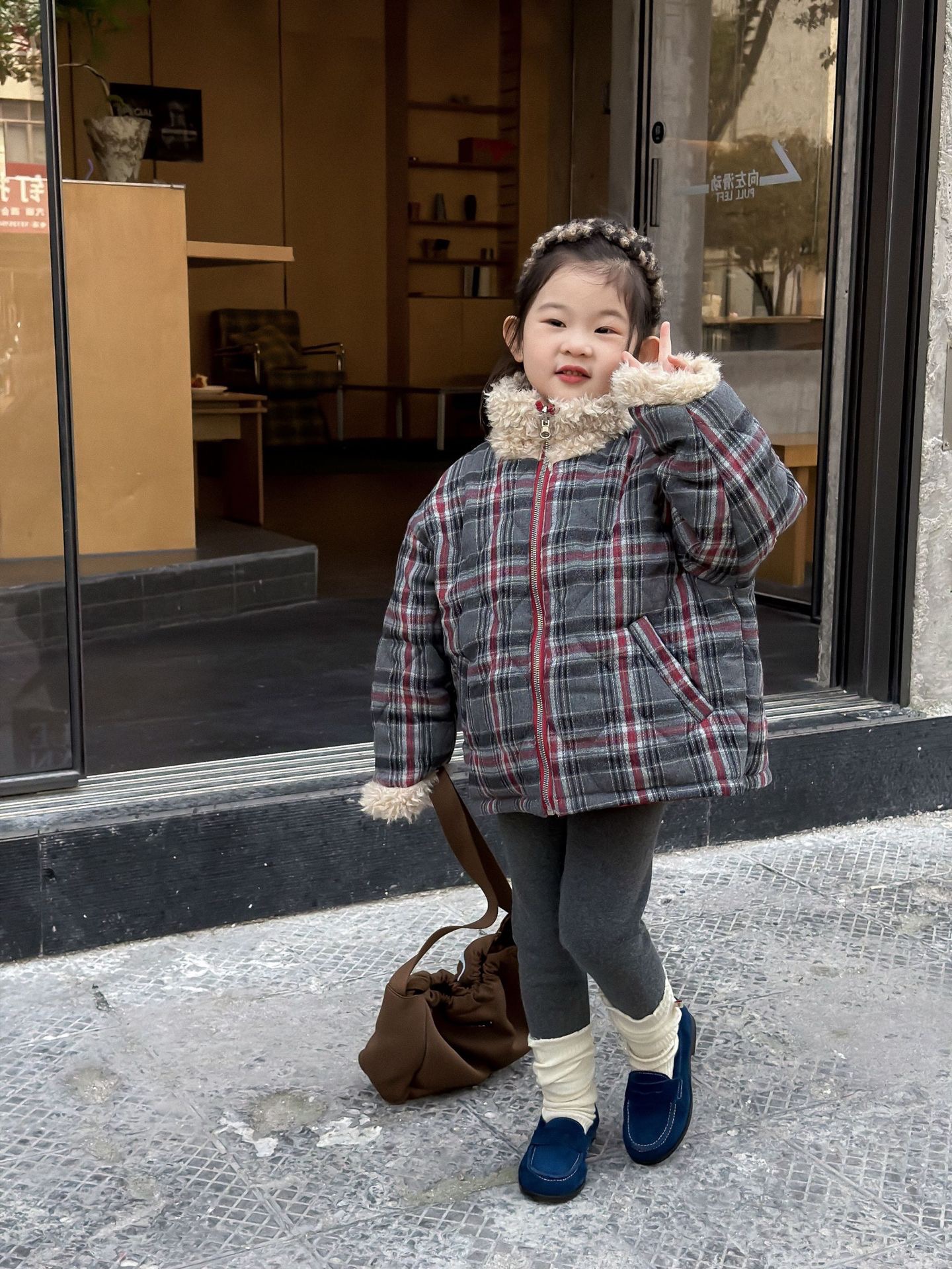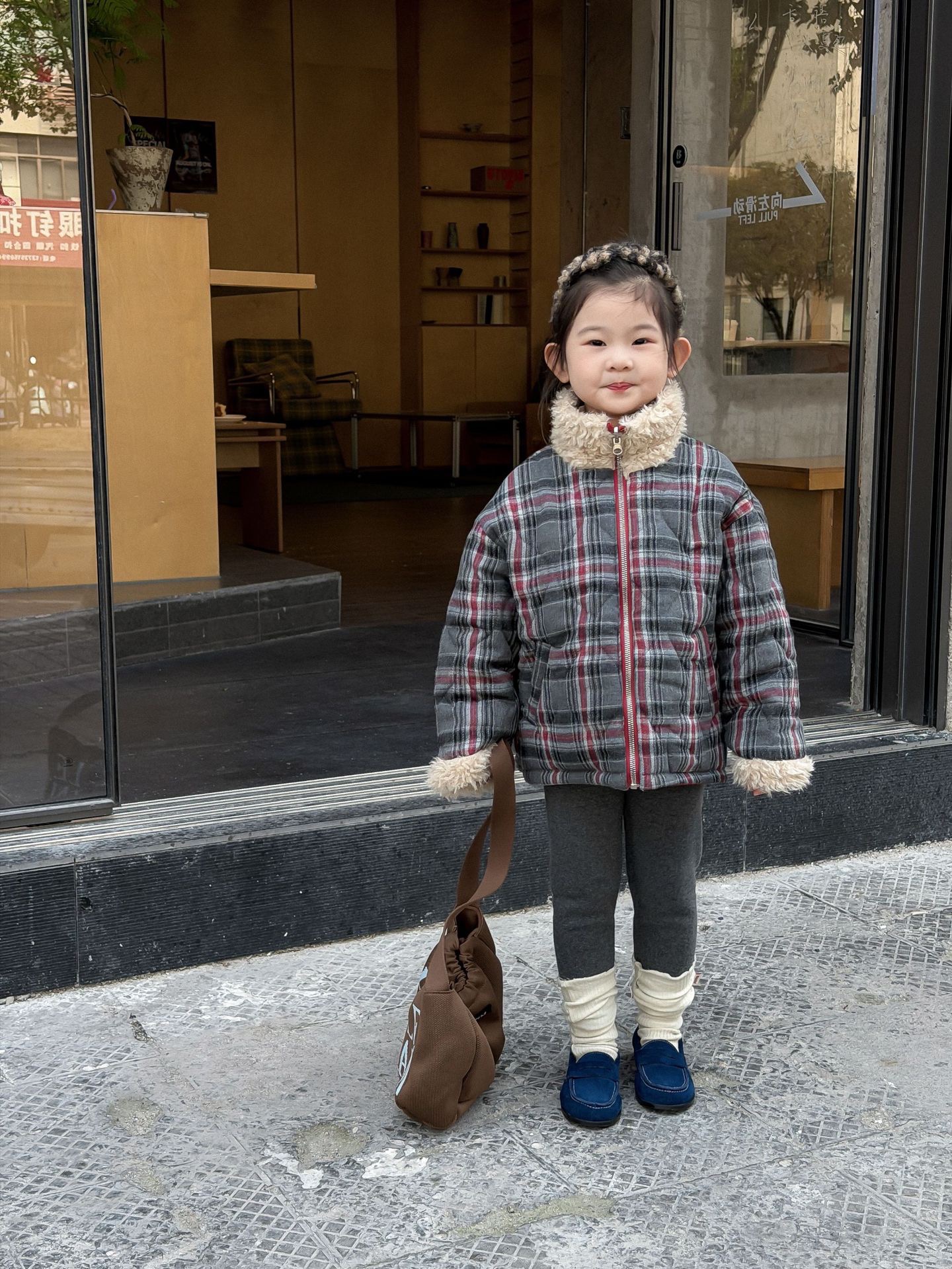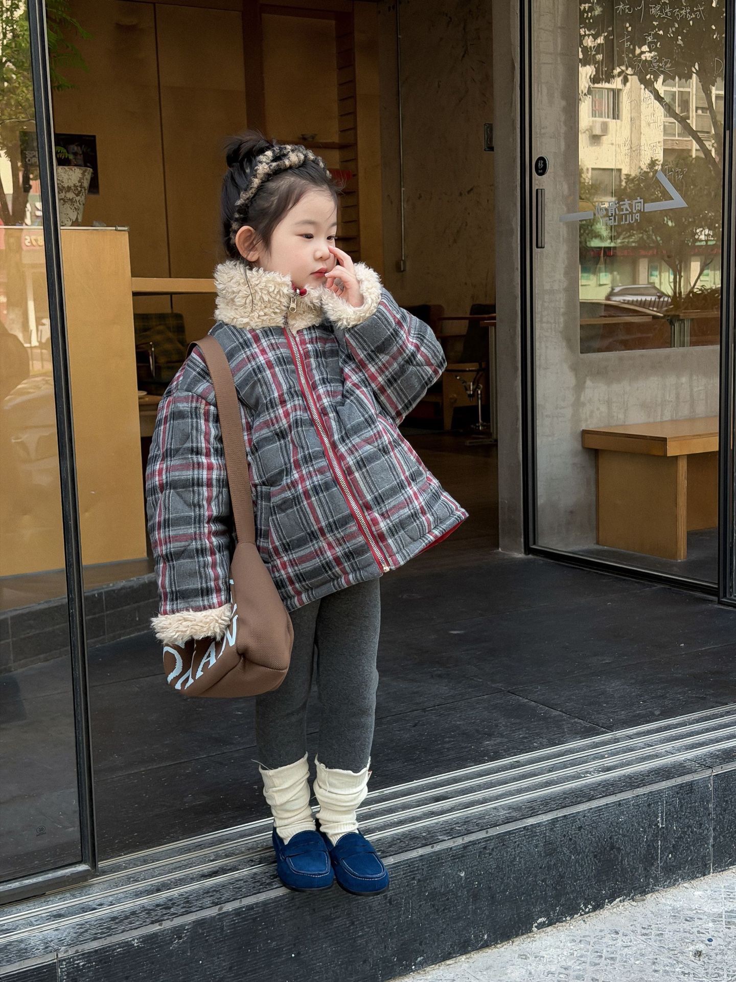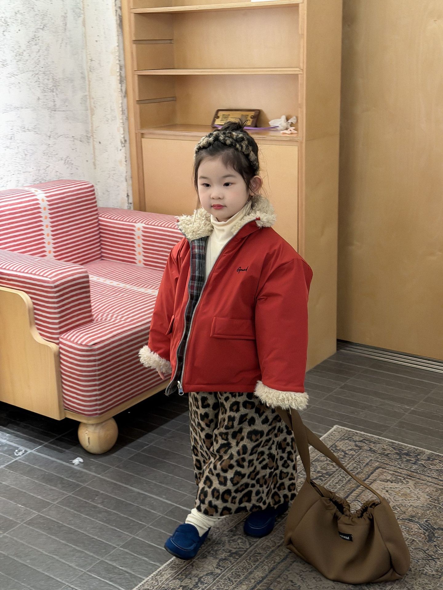 D1-024 夾棉毛領棉服兩面穿外套+加絨豹紋褲